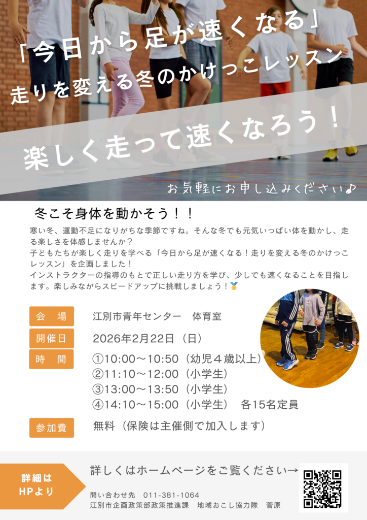 「今日から足が速くなる!」走りを変える冬のかけっこレッスン【江別市地域おこし協力隊主催】